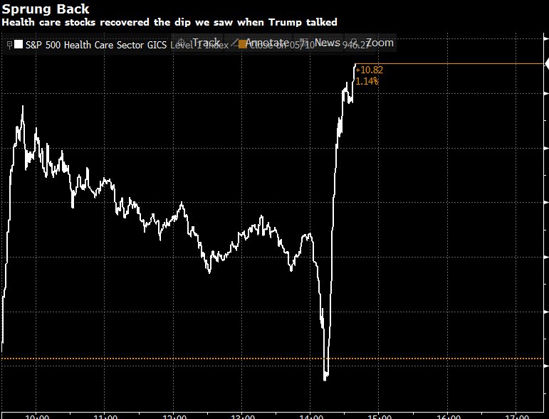 You've got to hand it to Donald Trump, he knows how to obscure his broken promises. Saying “Today, my administration is launching the most sweeping action in history to lower the price of prescription drugs for the American people,” without batting an eye and then adopting a plan that does next to nothing to fix drug prices is quite a trick. if you wonder what Wall Street thought of it, look at the chart above. If you wonder what Big Pharma thought of it look below.